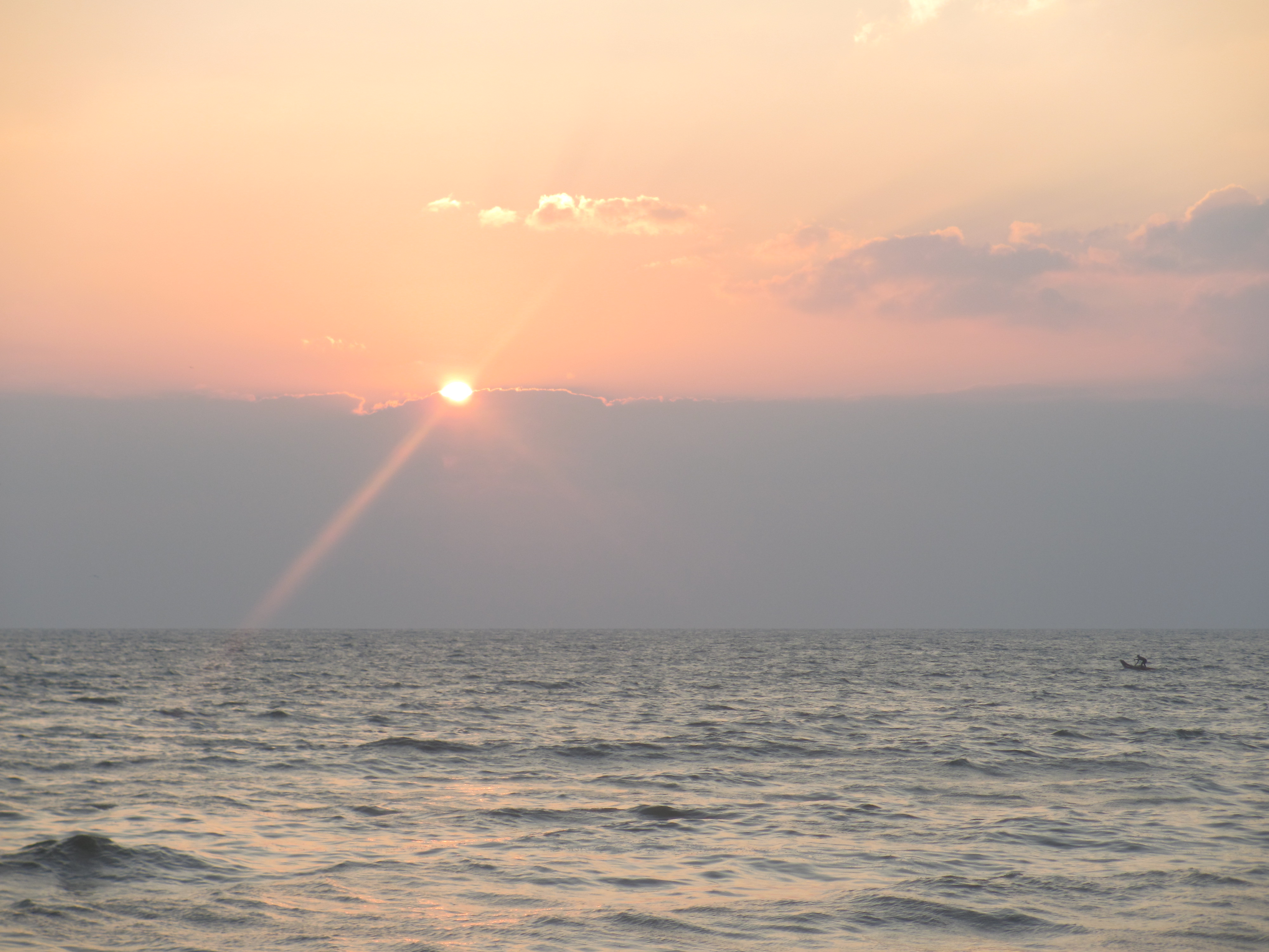 I woke up chance at around 5 AM on January 11, 2015. Instead of going back to bed (as usual) I decided to go and see the sunrise at Elliot’s Beach, Chennai. I carried a point and shoot camera along with me. I reached the beach a little late, however the clouds near the horizon had masked the view of the ‘Golden Disc’ rising out of the sea just like one of the Bond Girls coming out of the water towards the shore.